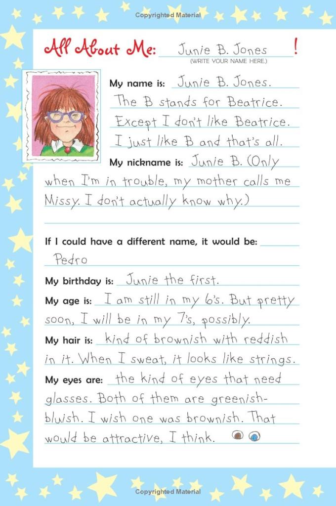 In Top-Secret, Junie fills out each page first, so you can see how she did it before you fill yours out. No other activity book I’ve seen does this. Other than that, it’s a standard “journaling” type book.